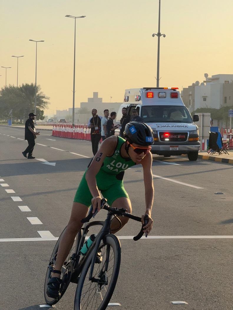 鐵人三項賽事開賽, 運動員勞日朗出戰男子個人超短距離賽。比賽依次展開 400米游泳、 8 公里單車及 2.5 公里跑步 部分 ,最終他以 36 分 49 秒的總成績位列第 29 名,順利完賽。